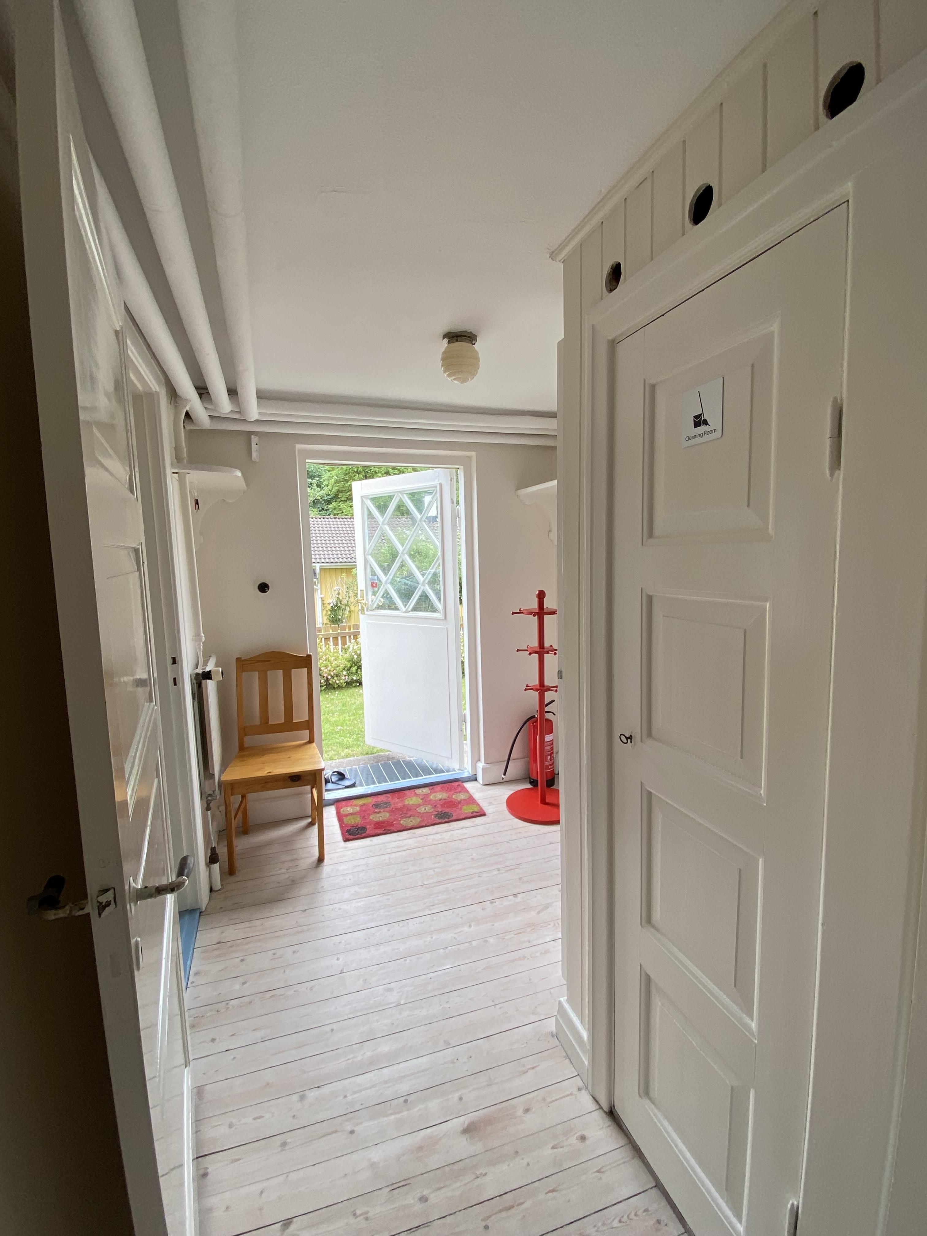 Dining area for four persons. Fridge/freezer, stove/oven, coffee maker and microwave oven.
